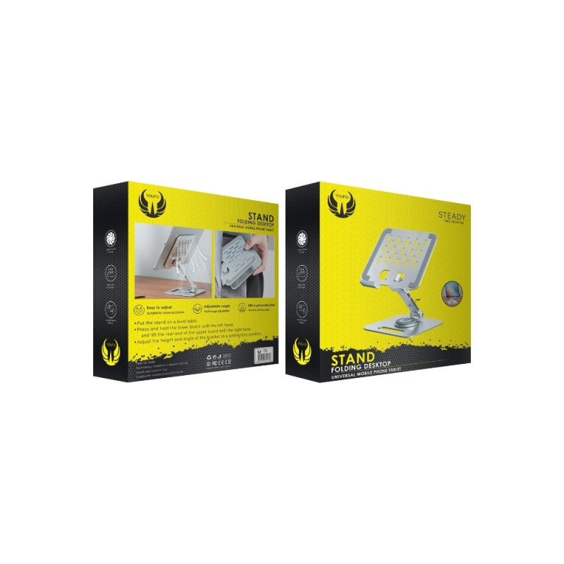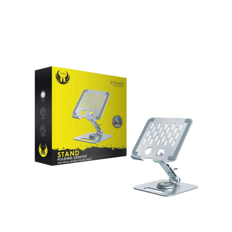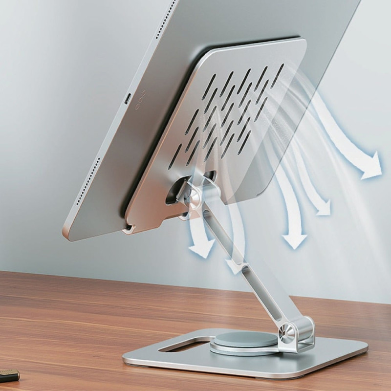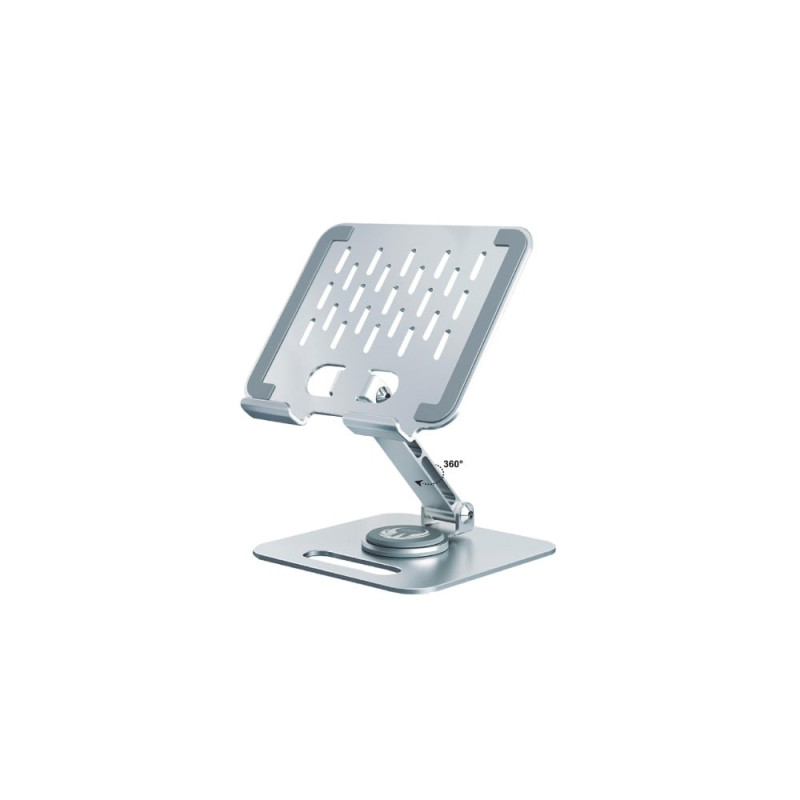 - دوران حر 360 درجة: قاعدة الحامل مزودة بمفصل دوران كامل يسمح لك بتدوير جهازك في أي اتجاه بسهولة تامة لمشاركة الشاشة أو تغيير زاوية الرؤية.