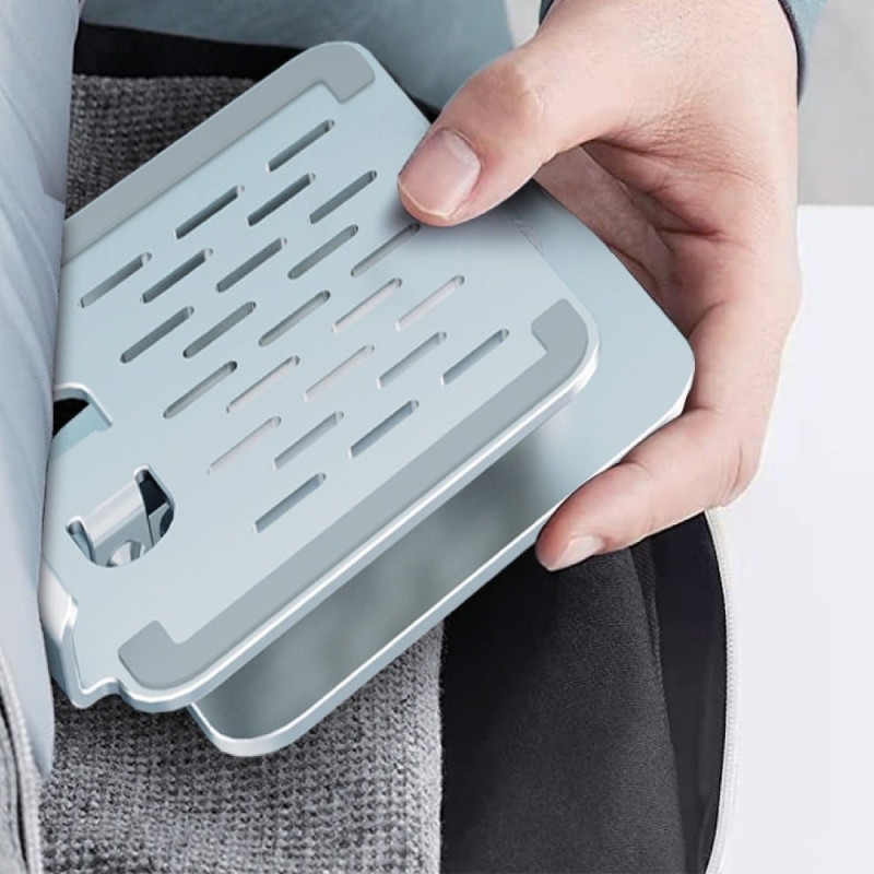 - قابل للطي والحمل: يتميز الحامل بقدرته على الانطواء بشكل كامل ليصبح مسطحاً، مما يجعله سهل الوضع في الحقيبة وحمله معك إلى أي مكان.