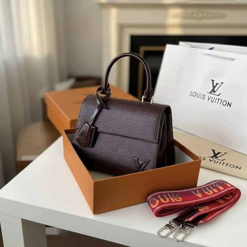شنطة فاخرة طبق الأصل من لويس فيتون LV بلون برغندي أنيق ولمسة لامعة فخمة تضيف لمظهرك لمسة راقية.